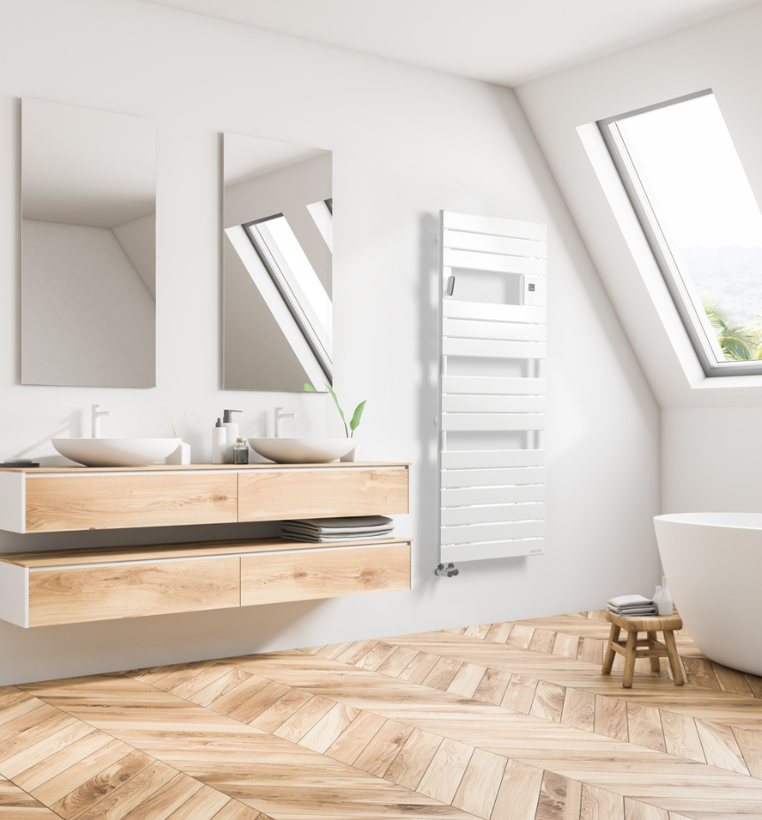 Radiateur sèche-serviettes ATLANTIC – Adélis Mixte - Avec soufflerie – 1750W – Blanc Brillant – 861959 |